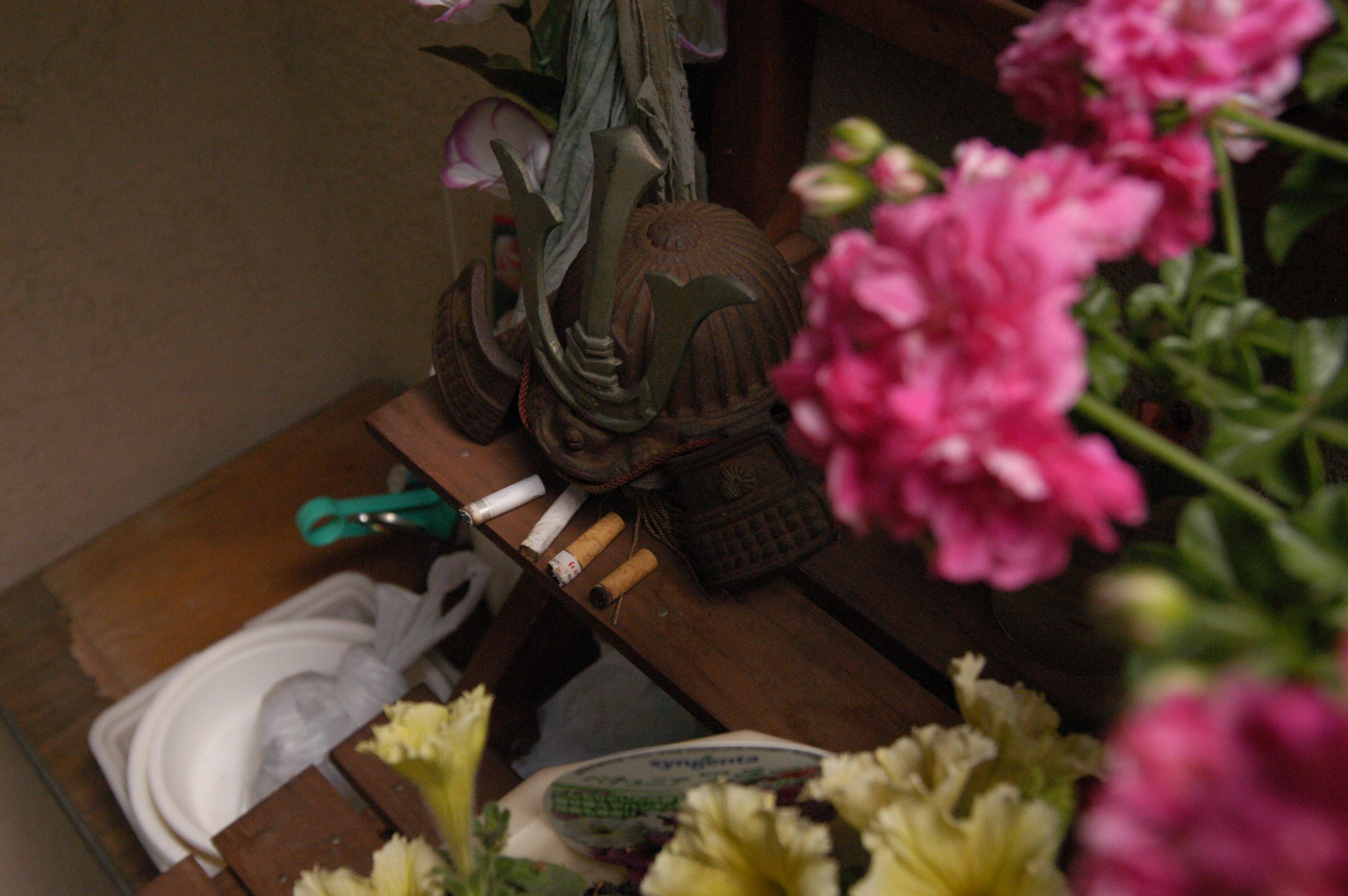 昔の鉄製の兜の前に並べてみました。